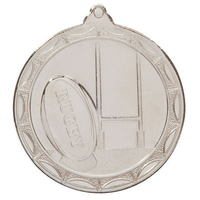 The Cascade Rugby Medal, available in gold, silver, and bronze, is a striking medal designed to celebrate rugby achievements. Measuring 5cm in size, this medal features a detailed rugby ball with a goal post in the background, framed by an elegant decorative border. The design embodies the spirit of the game, making it an ideal choice for recognising outstanding performances on the rugby field. The Cascade Rugby Medal offers a fitting tribute to the dedication and skill of its recipients.