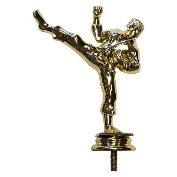 At the top of this giant trophy, a glimmering gold karate kicking figure awaits, beckoning to the potential victor. The addition of the intricate eagle embellishments on the wood also adds a touch of majesty