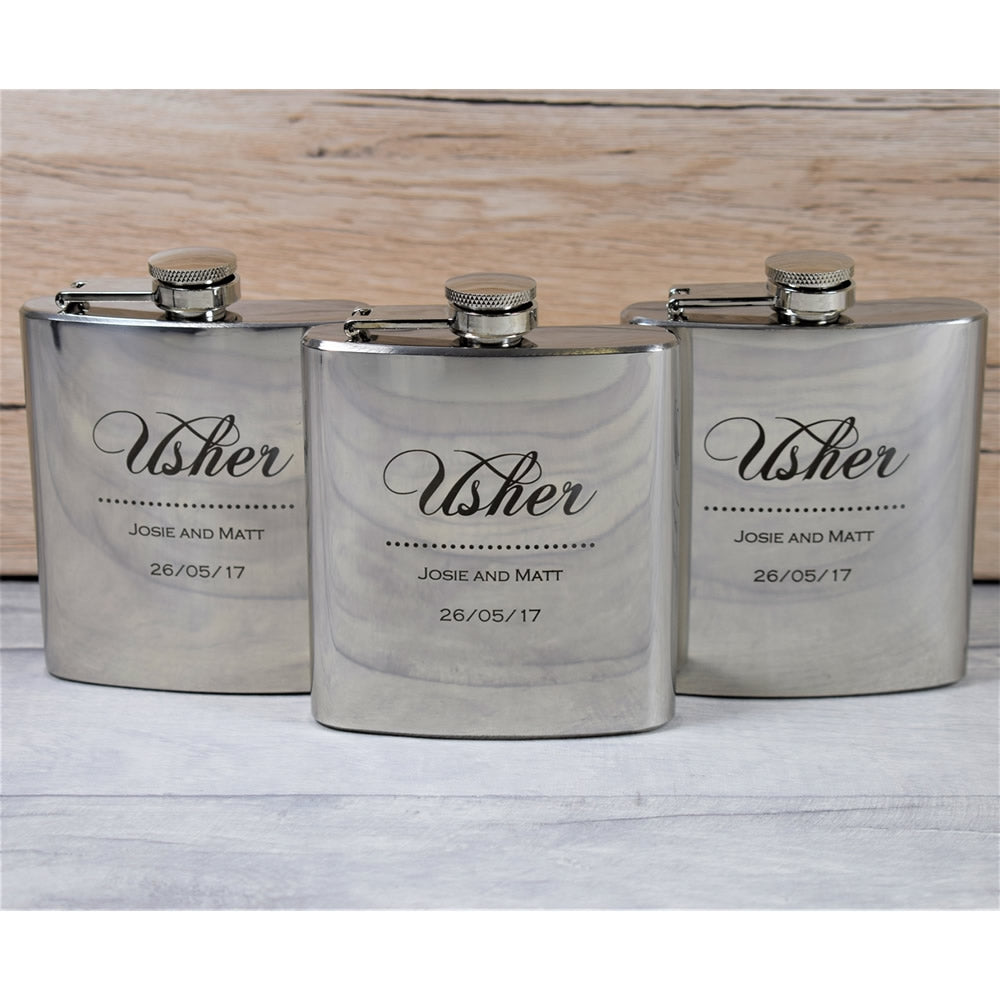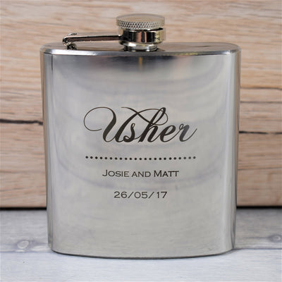 Personalised 6oz Wedding Hip Flask Gift Set - Design 4