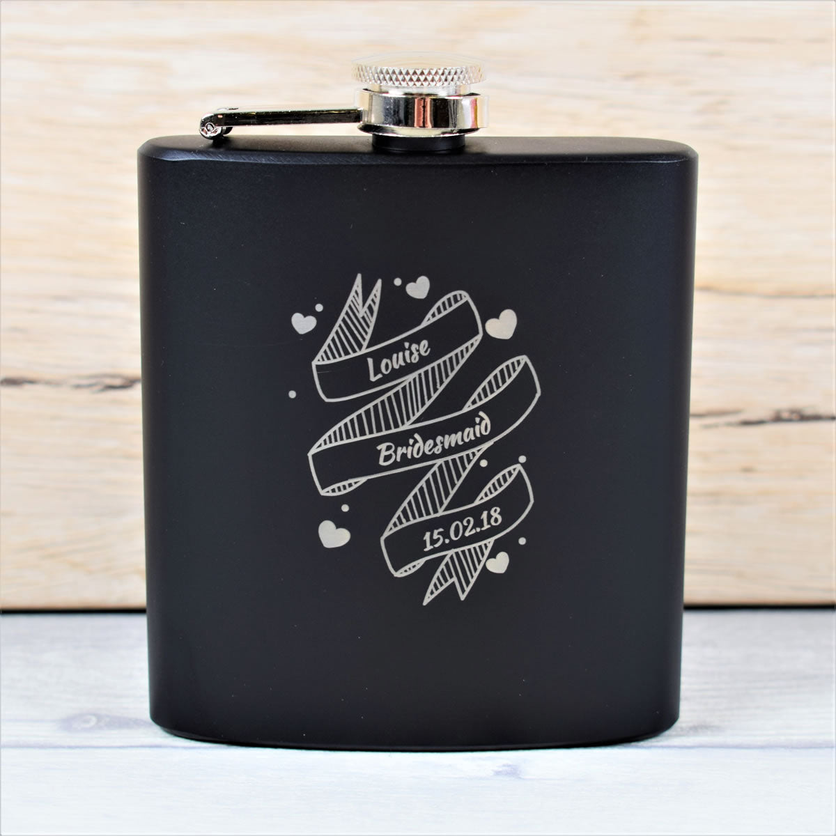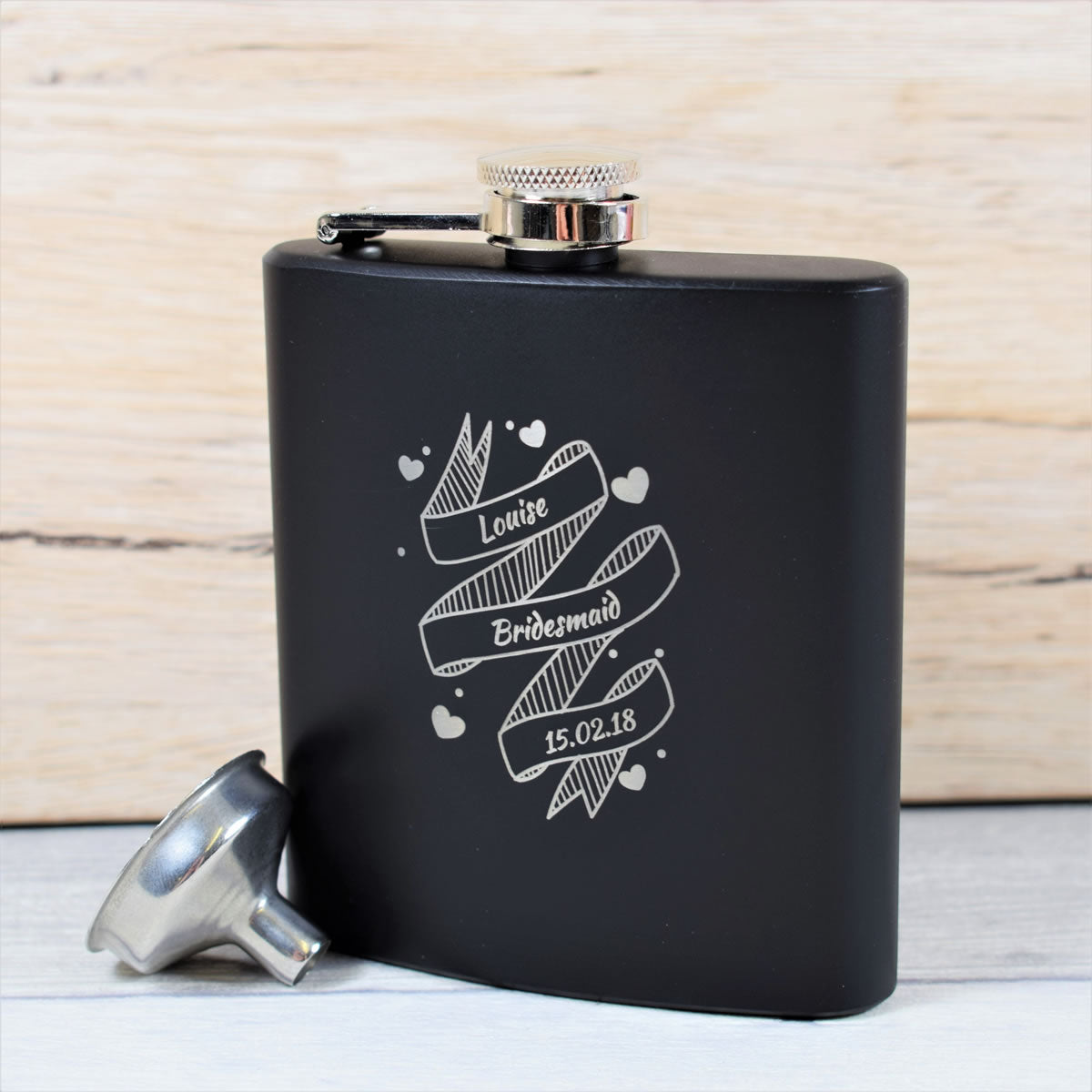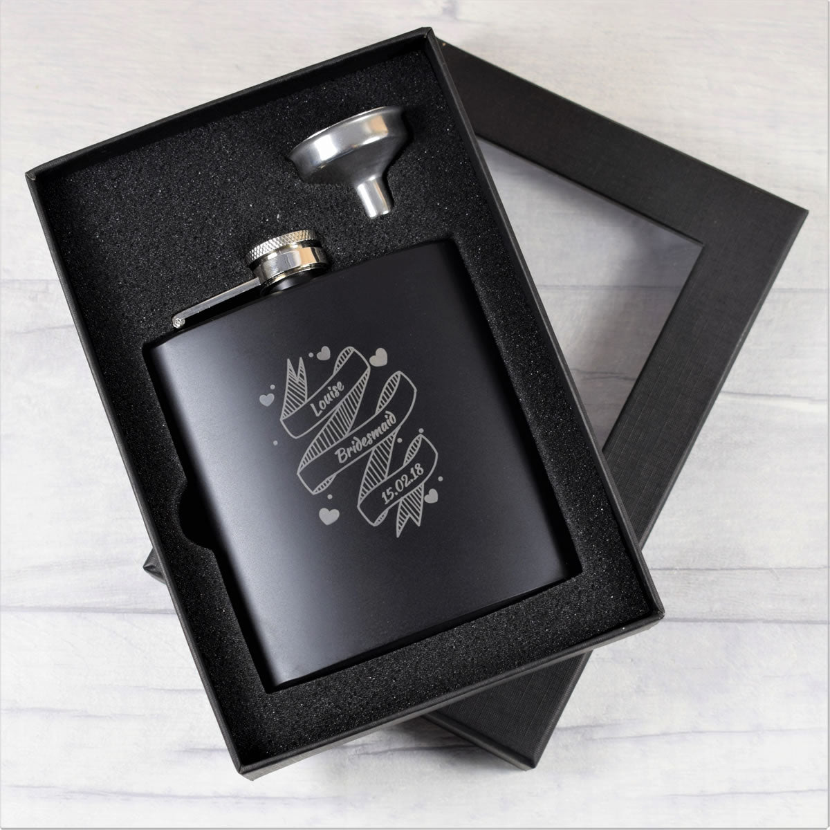 Personalised Black Bridemaid Wedding Hip Flask Gift Set