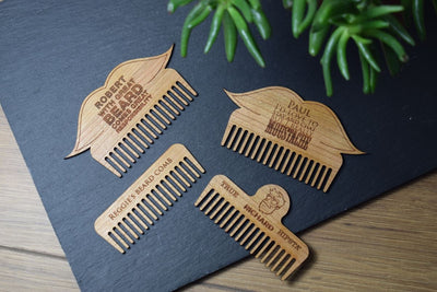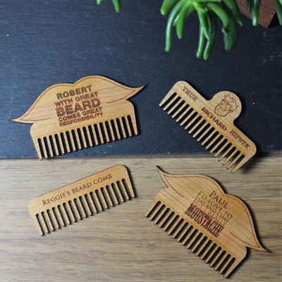 Our laser cut beard/moustache combs are made from gorgeous cherry wood; we cut them ourselves and engrave them to suit your requests.