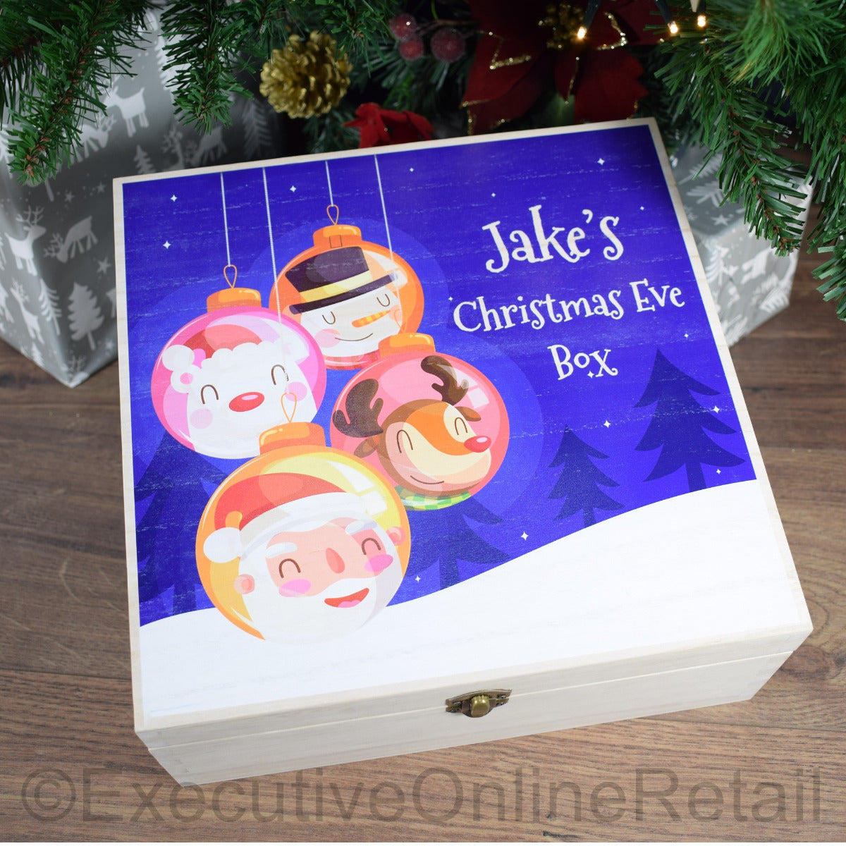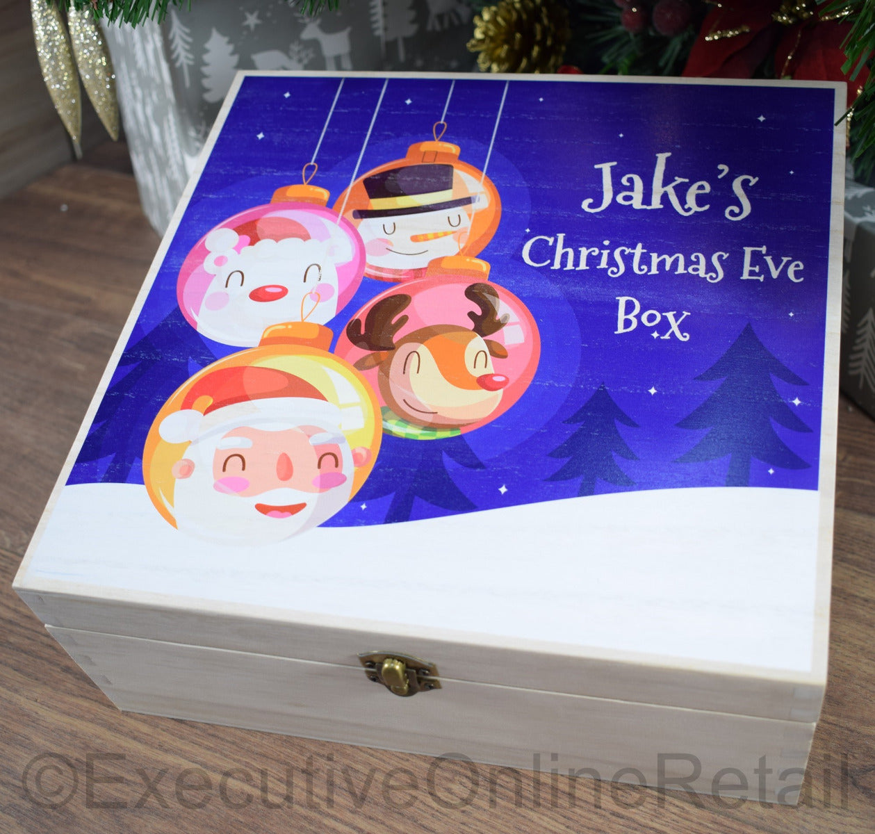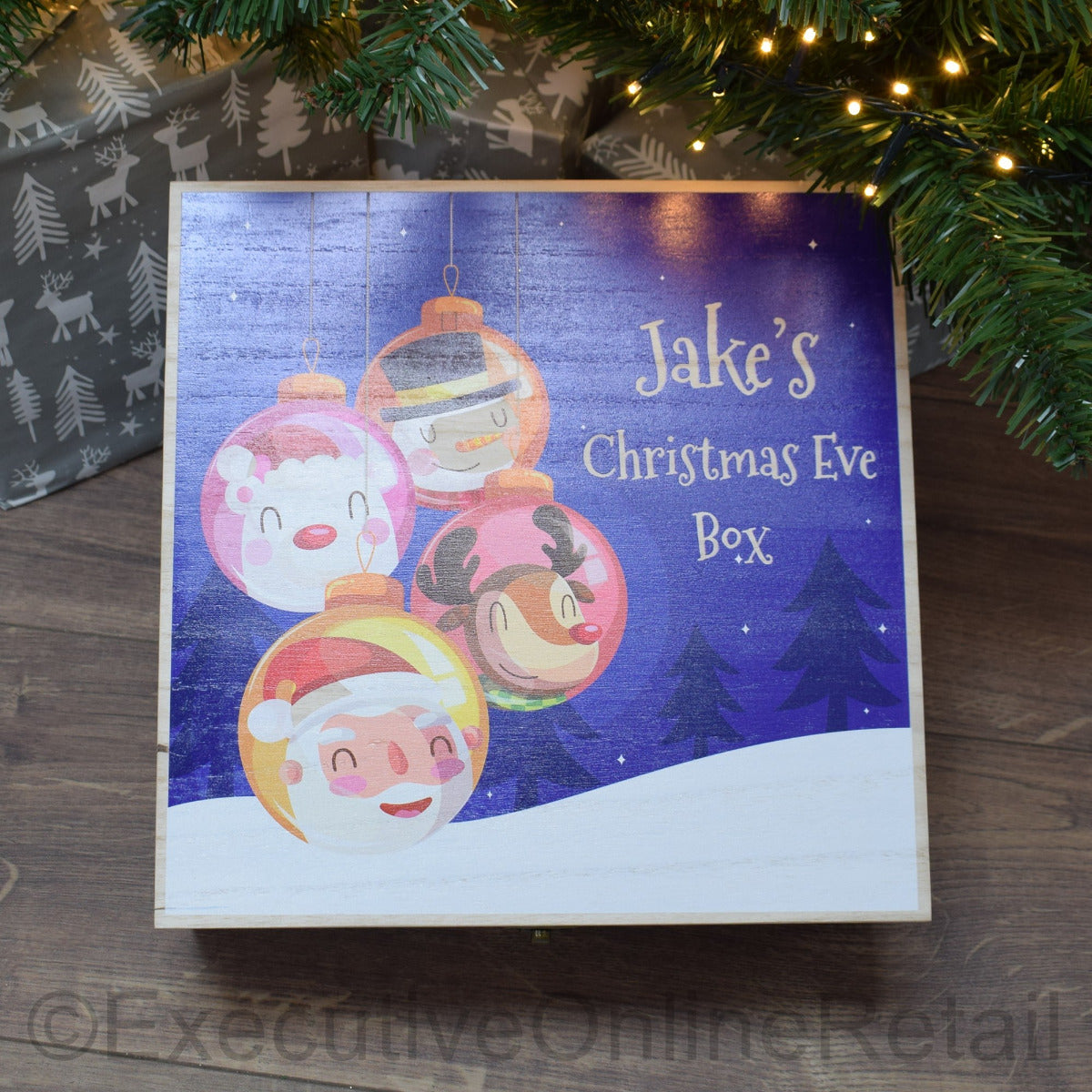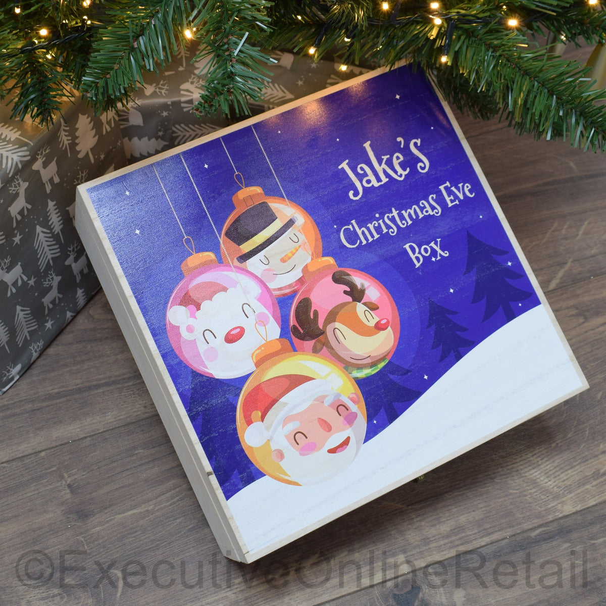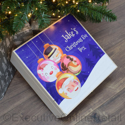 Personalised Printed Wooden Christmas Eve Box - Bauble Santa