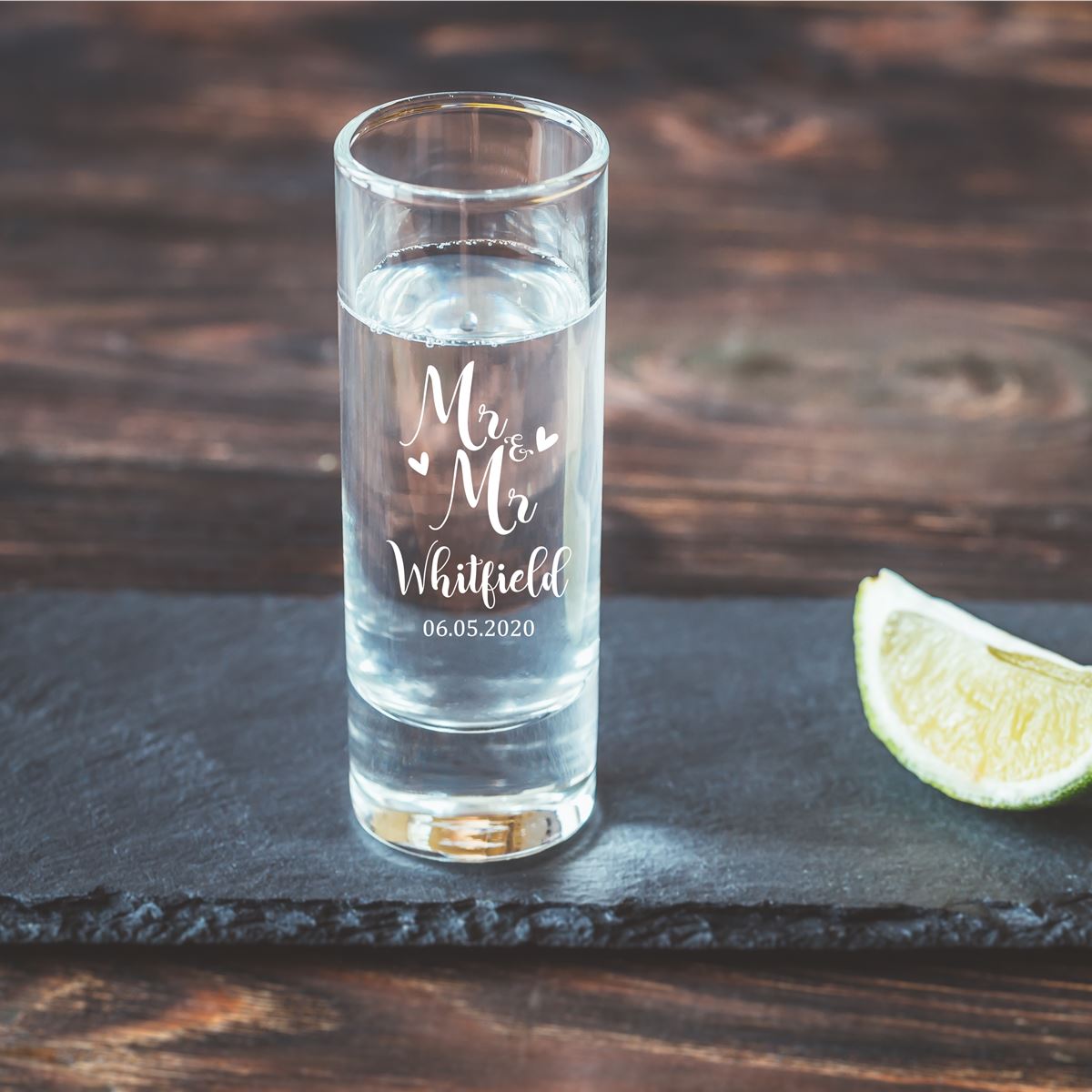 A swift shot of your favourite spirit can be just the ticket!. This personalised wedding shot glass can be engraved with the newlyweds name and wedding date to create a unique truly unique memento of your big day.