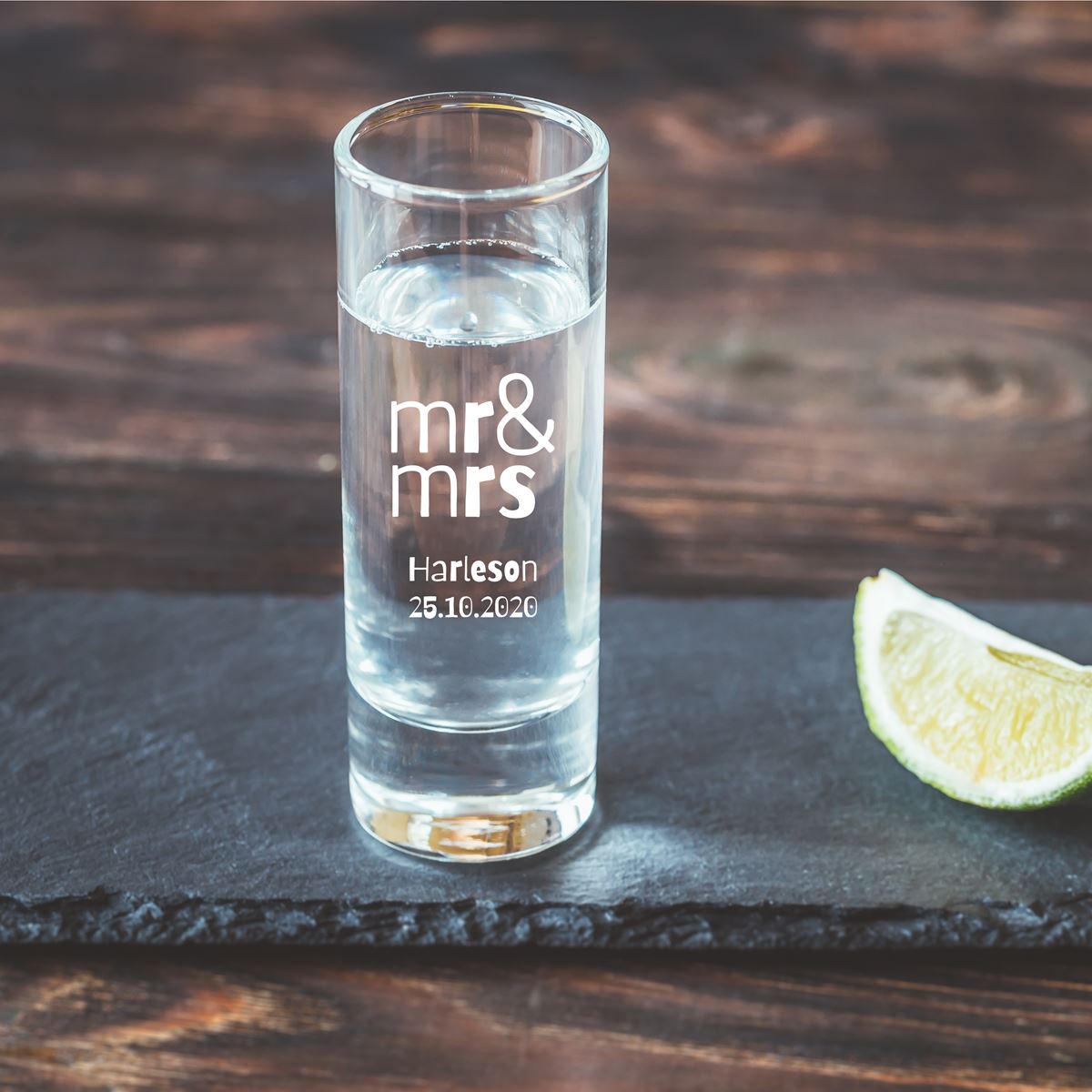 A swift shot of your favourite spirit can be just the ticket!. This personalised wedding shot glass can be engraved with the newlyweds name and wedding date to create a unique truly unique memento of your big day.