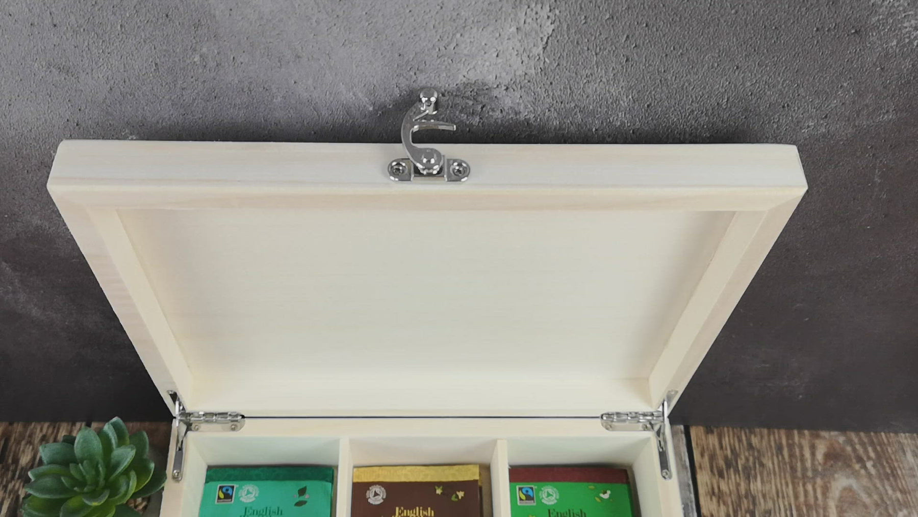 A new style latch on this box helps the lid to close easily and firmly, keeping your tea fresh!