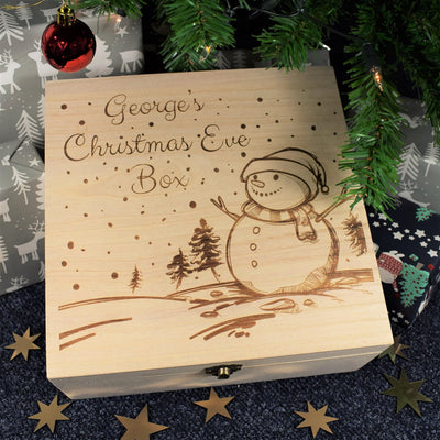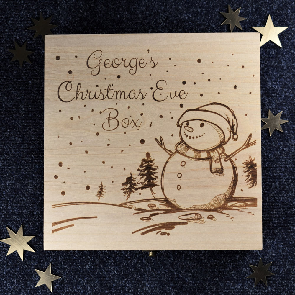 Personalised Wooden Christmas Eve Box - Snowman Scene