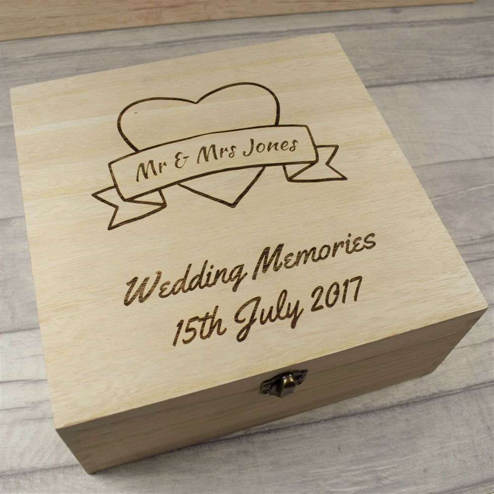 Personalised Wooden Wedding Memories Box - Heart Banner