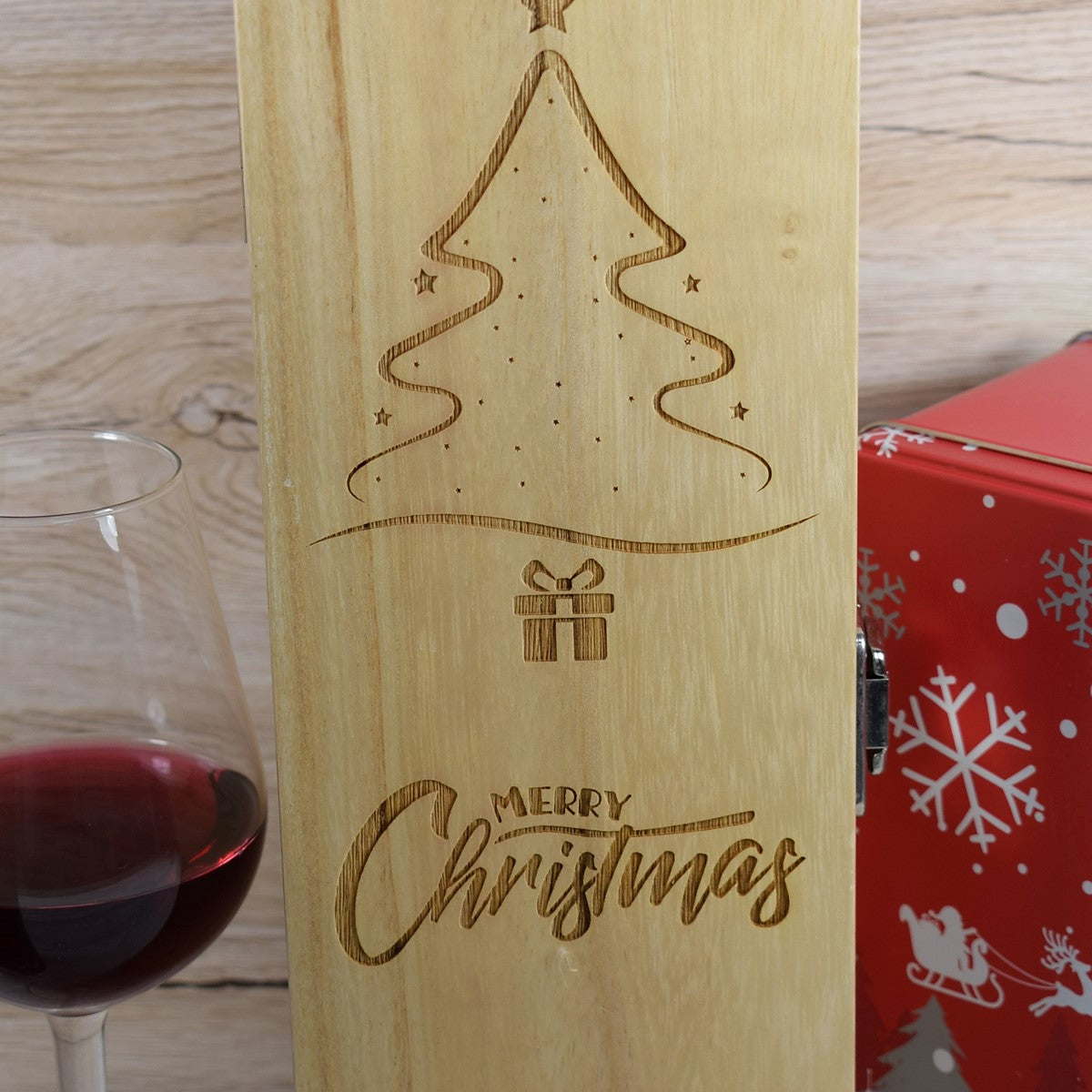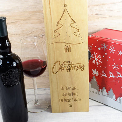 Personalised Wooden Wine Box, Christmas Wine Gifts - Xmas Tree 2