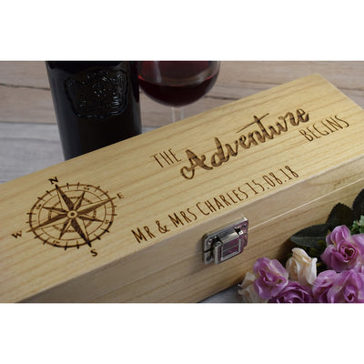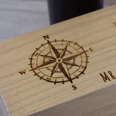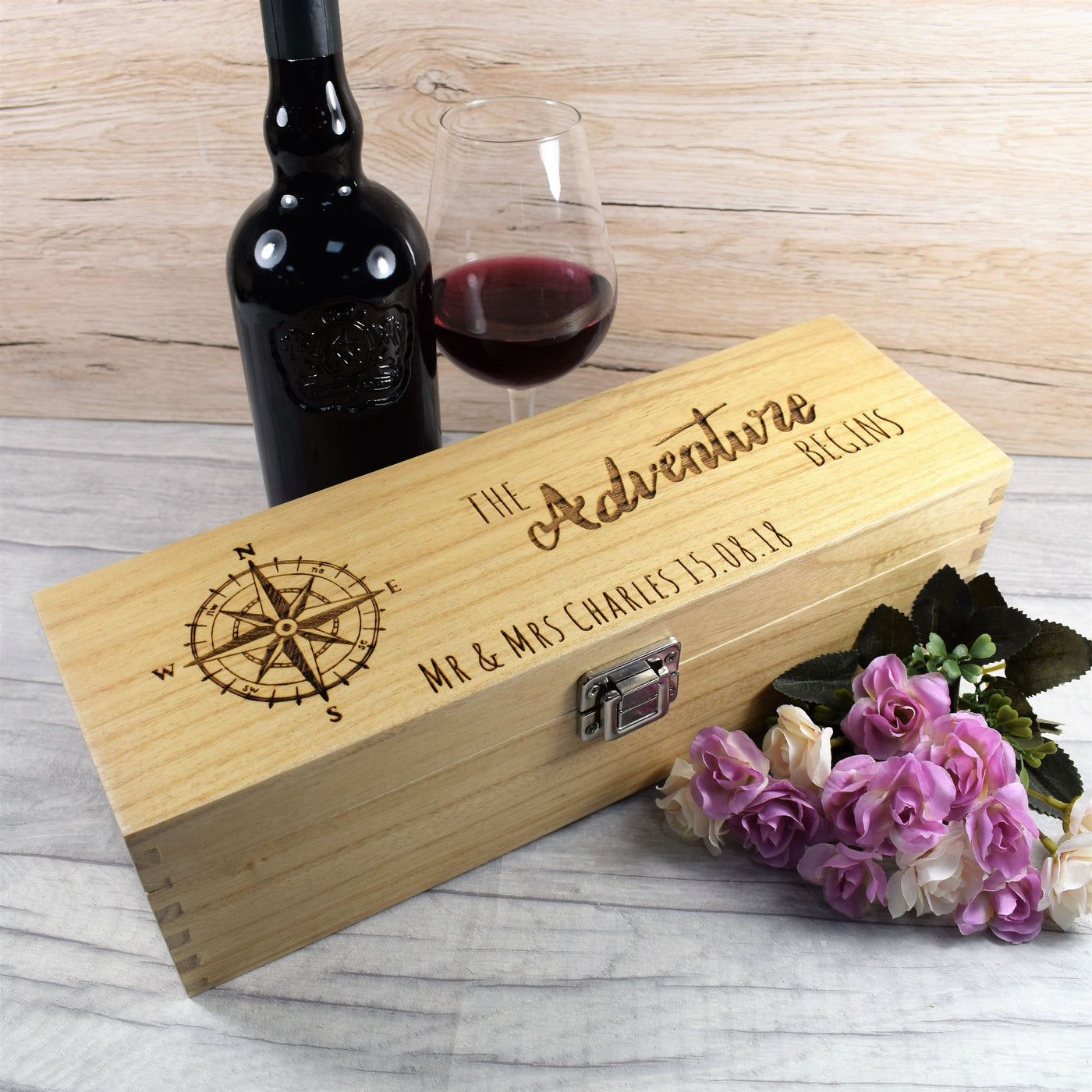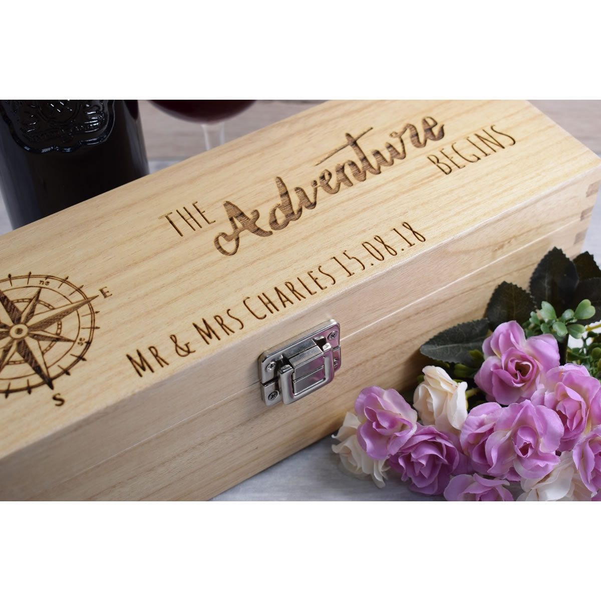 - This box will automatically be engraved with the Compass design and 'The Adventure Begins' text, we just need your message in order to personalise the product. You can add a line of text at the bottom