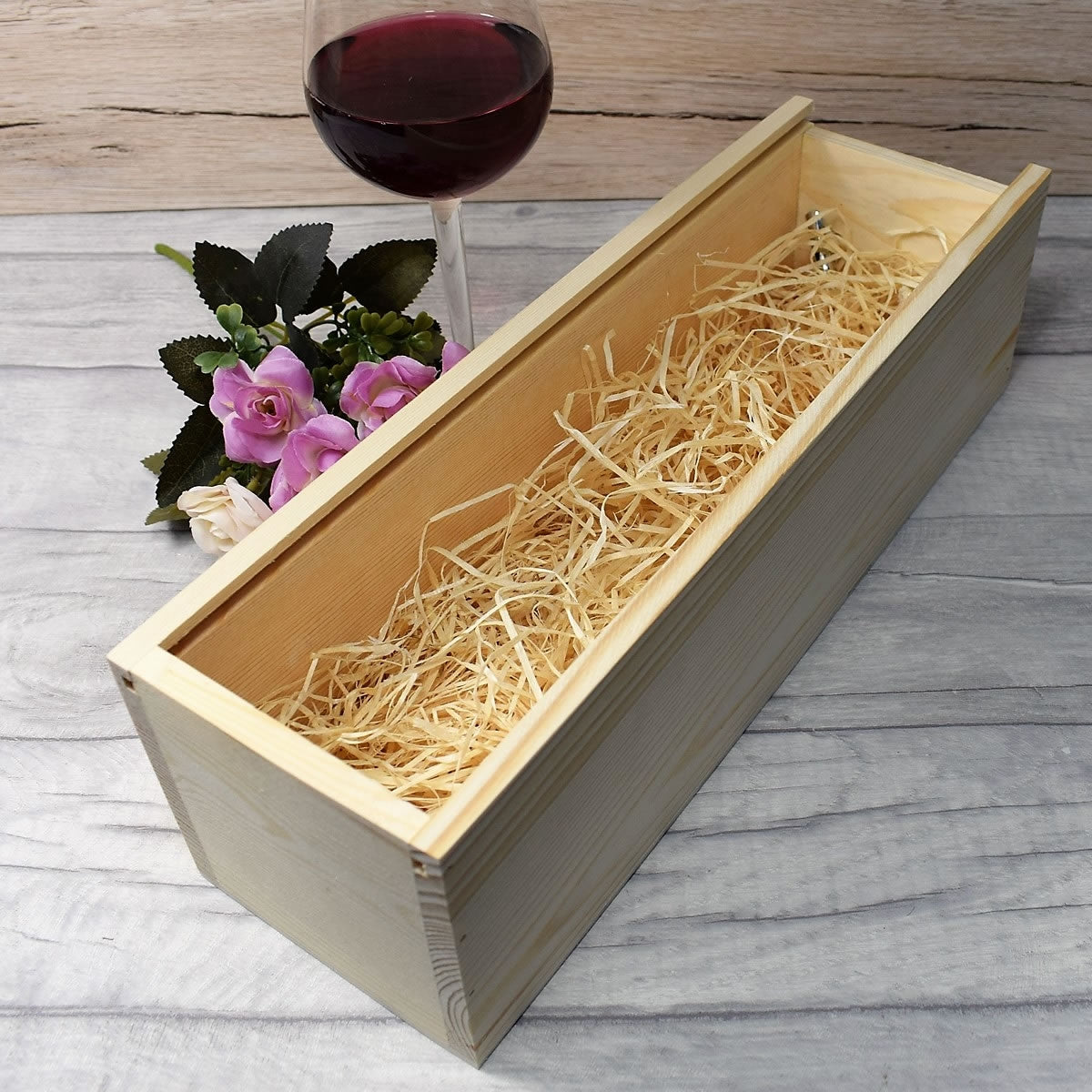 This box is designed to hold a standard bottle of wine and the maximum bottle measurements are (D) 9cm x (H) 33cm