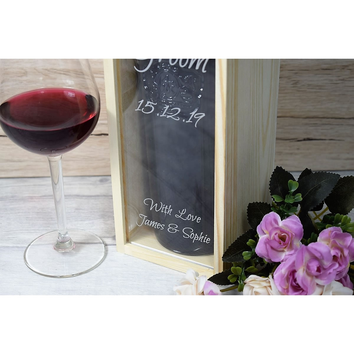 Personalised Wooden Wine Box with Clear Lid - Wedding Party Gift