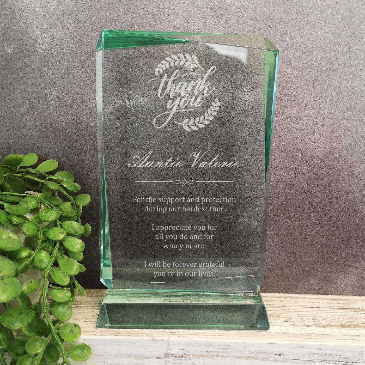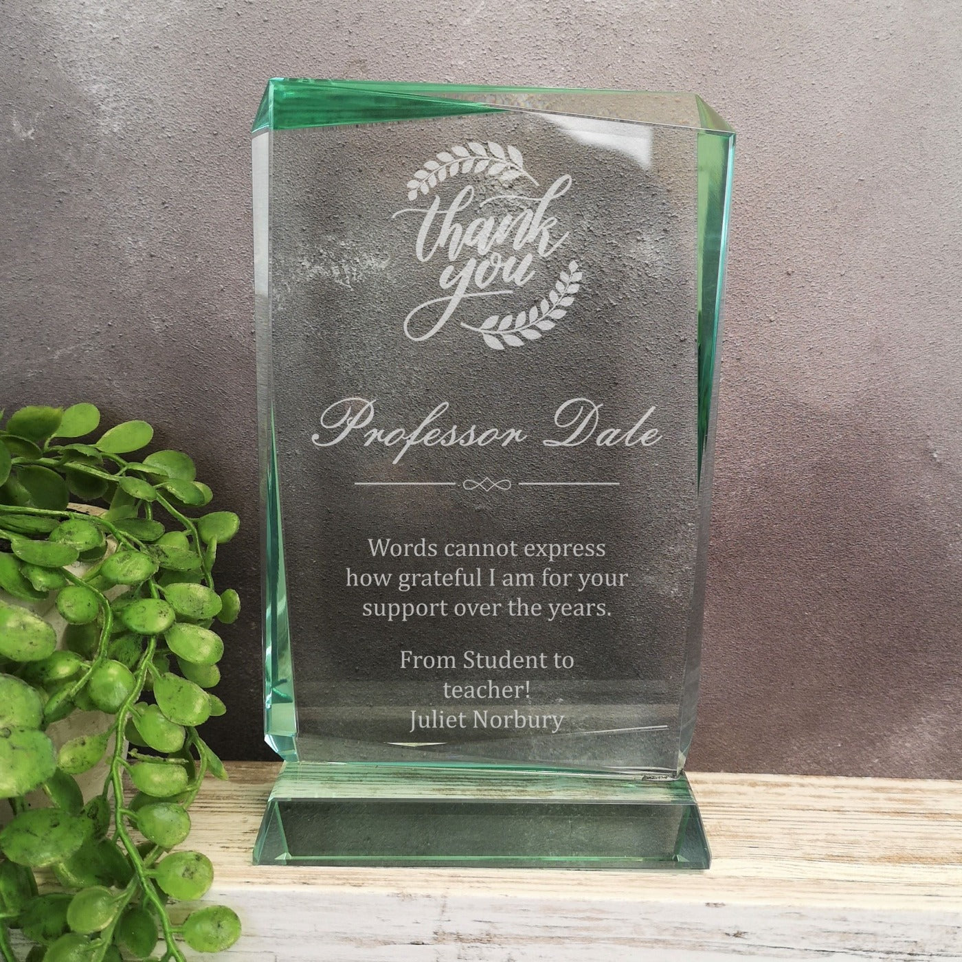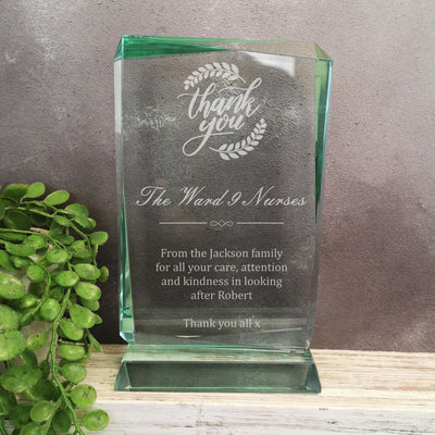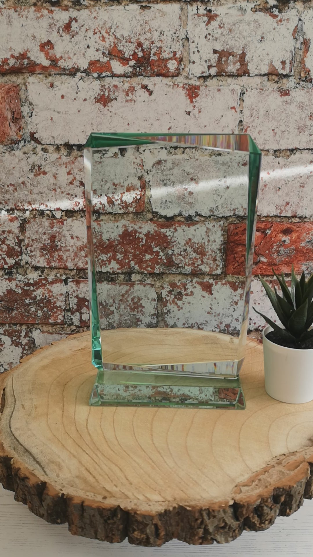 The Renegade Jade Crystal Thank You Award is a cut above the rest. Featuring wide, diamond-cut sides this is a solid rectangular plaque, mounted upright on a solid bevel-edged base. This award is finely crafted from a high-quality 19mm thick jade crystal