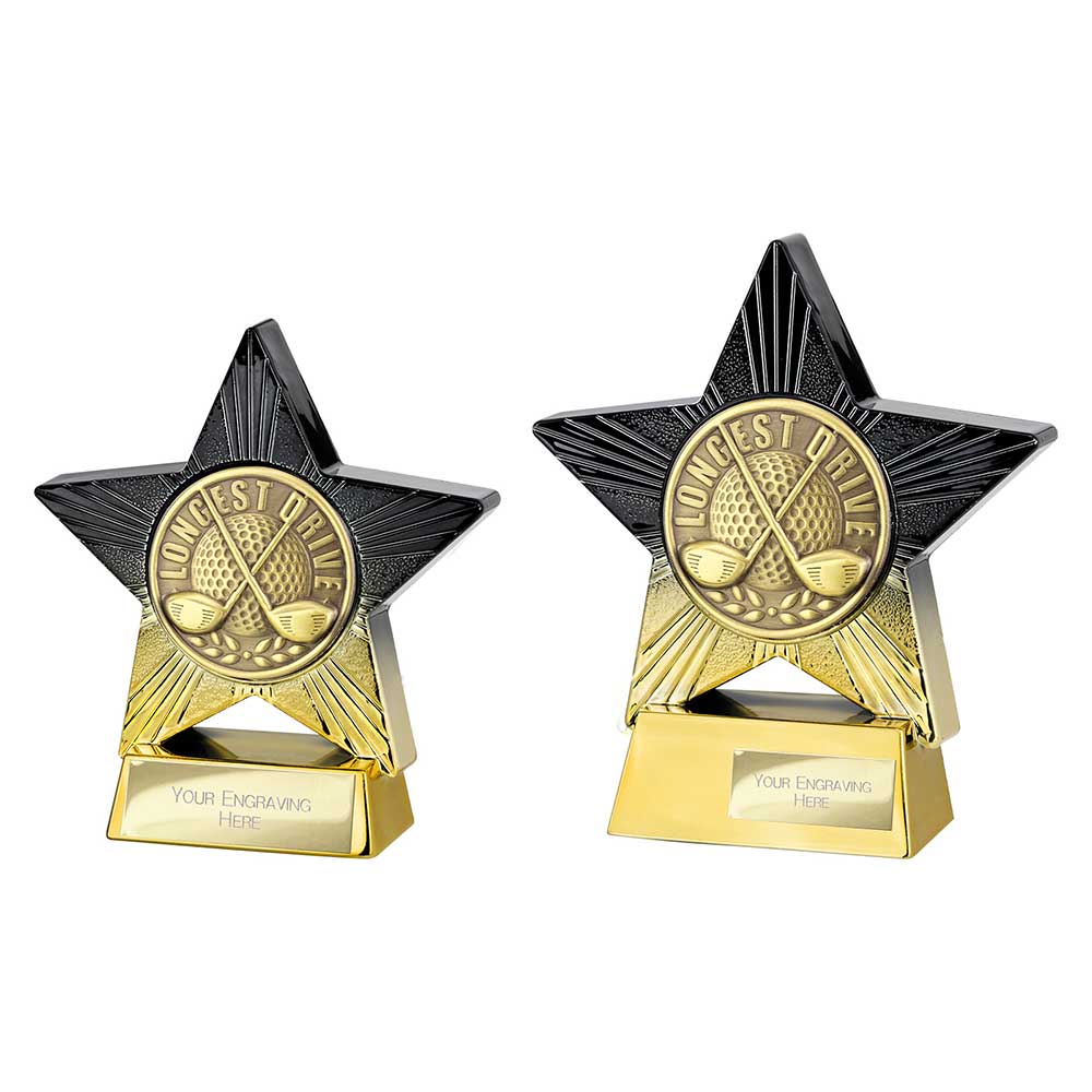 Superstar Longest Drive Golf Trophy Award - Black and Gold