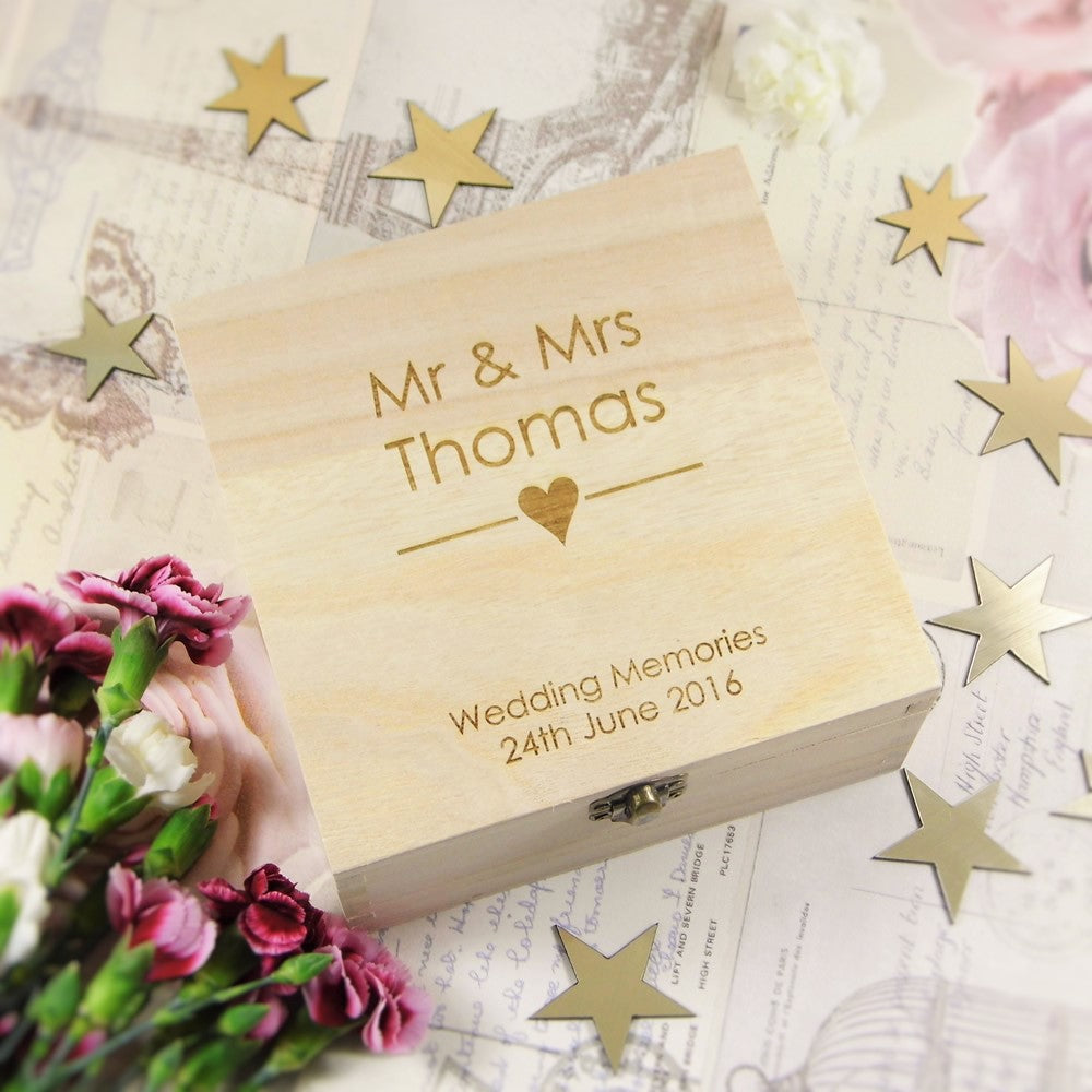 Store all of the memories from your big day in this rustic, wooden box which can be personalised with yours and your partner's surname. Perfect for storing photographs, wedding favours and other memories, you can treasure this box for years to come and always have something filled with fond memories from the day you became a married couple.
